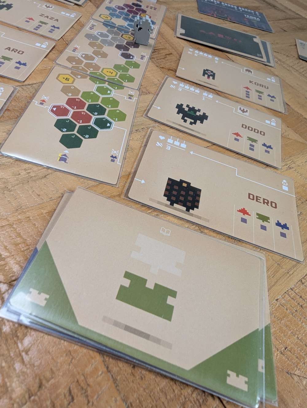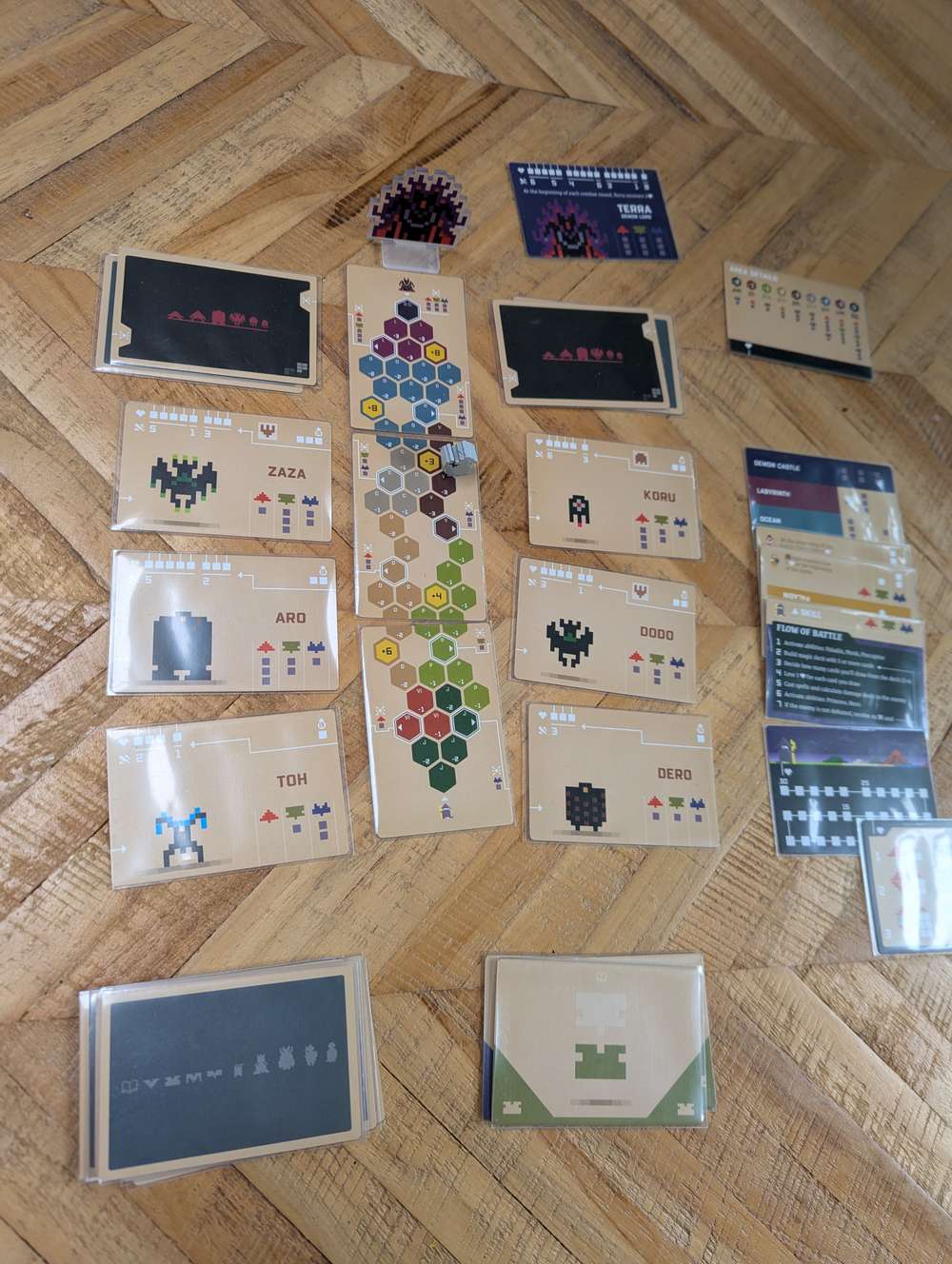 Full game setup. The sleeves make everything kinda shiny, I think I would have preferred matte sleeves.